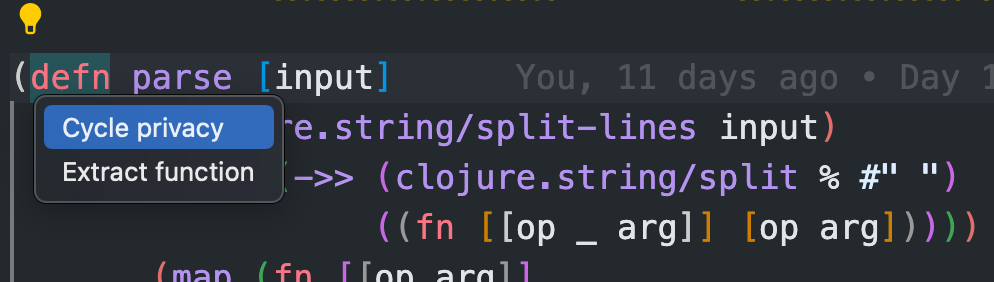 | Cycle/Toggle Privacy | clojureLsp.refactor.cyclePrivacy |